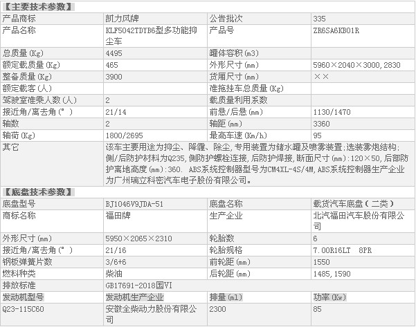 國六福田時代領(lǐng)航H2藍牌抑塵車整車技術(shù)參數(shù):