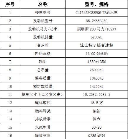 1、整車型號(hào): CLT5252GSSEQ6型灑水車